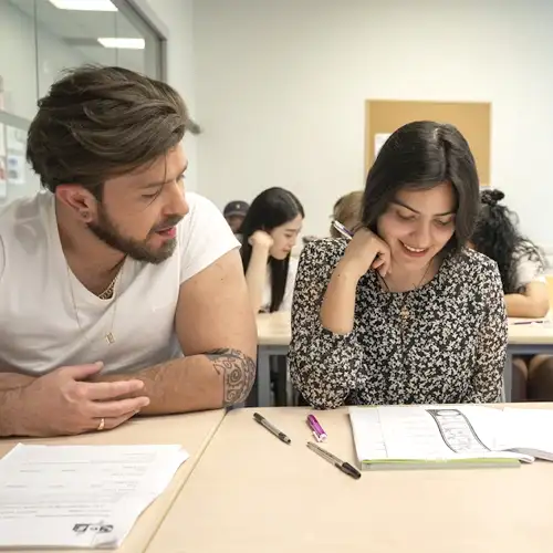 Les classes sont composées de petits groupes (en moyenne 9 à 12 étudiants, maximum 16), ce qui permet une attention individualisée et une interaction optimale avec les enseignants qualifiés.